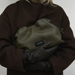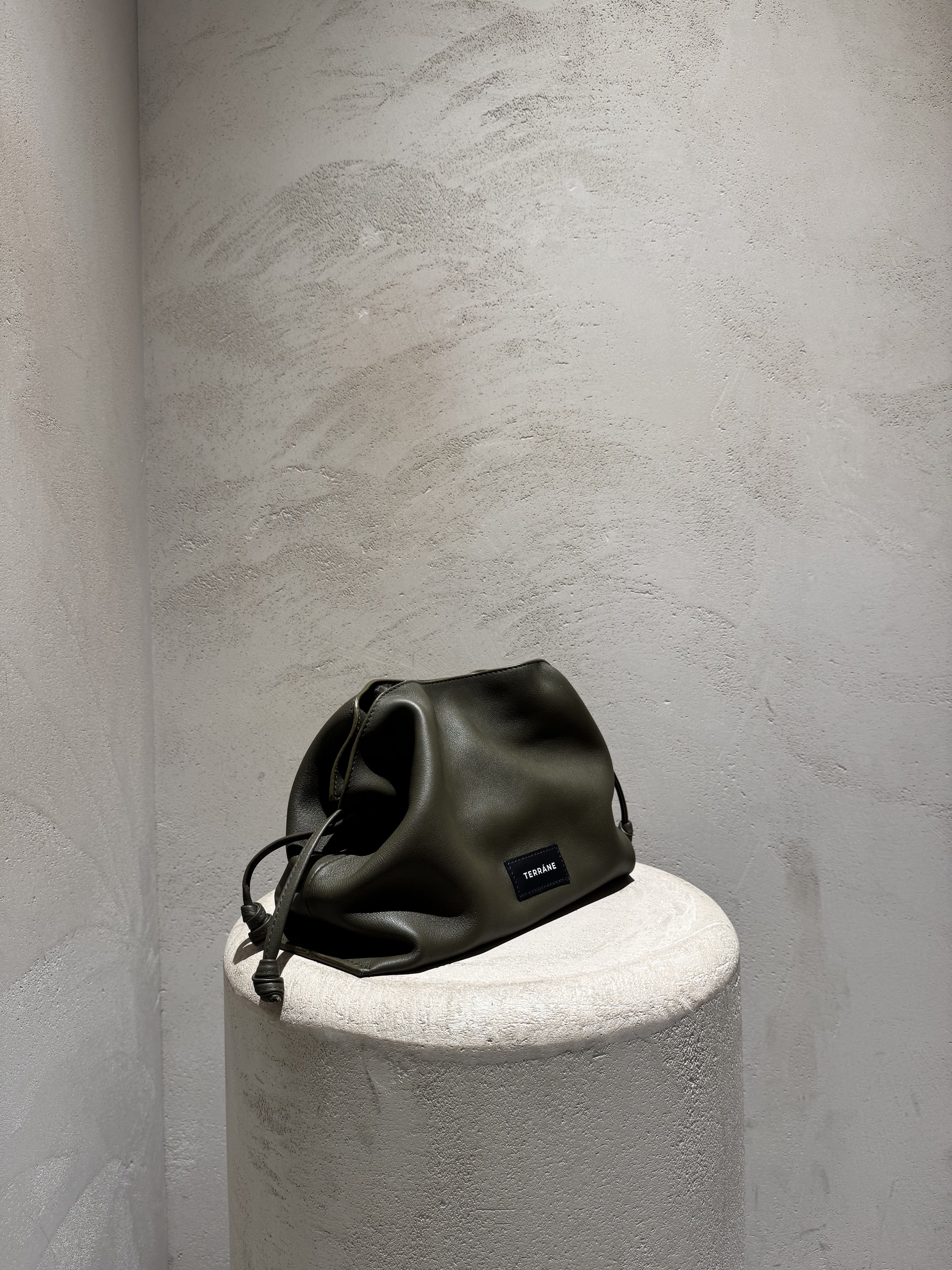 Diseño de líneas orgánicas inspiradas en el movimiento del mar. Una pieza atemporal que apuesta por la serenidad y la moda consciente, confeccionada en piel vacuna de tacto suave de la alta calidad.