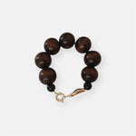 Each 25mm natural wood bead reflects the strength and organic beauty of the Mediterranean environment. The gold-plated clasp and engraved charm provide a lasting, elegant, and very Terranean detail.