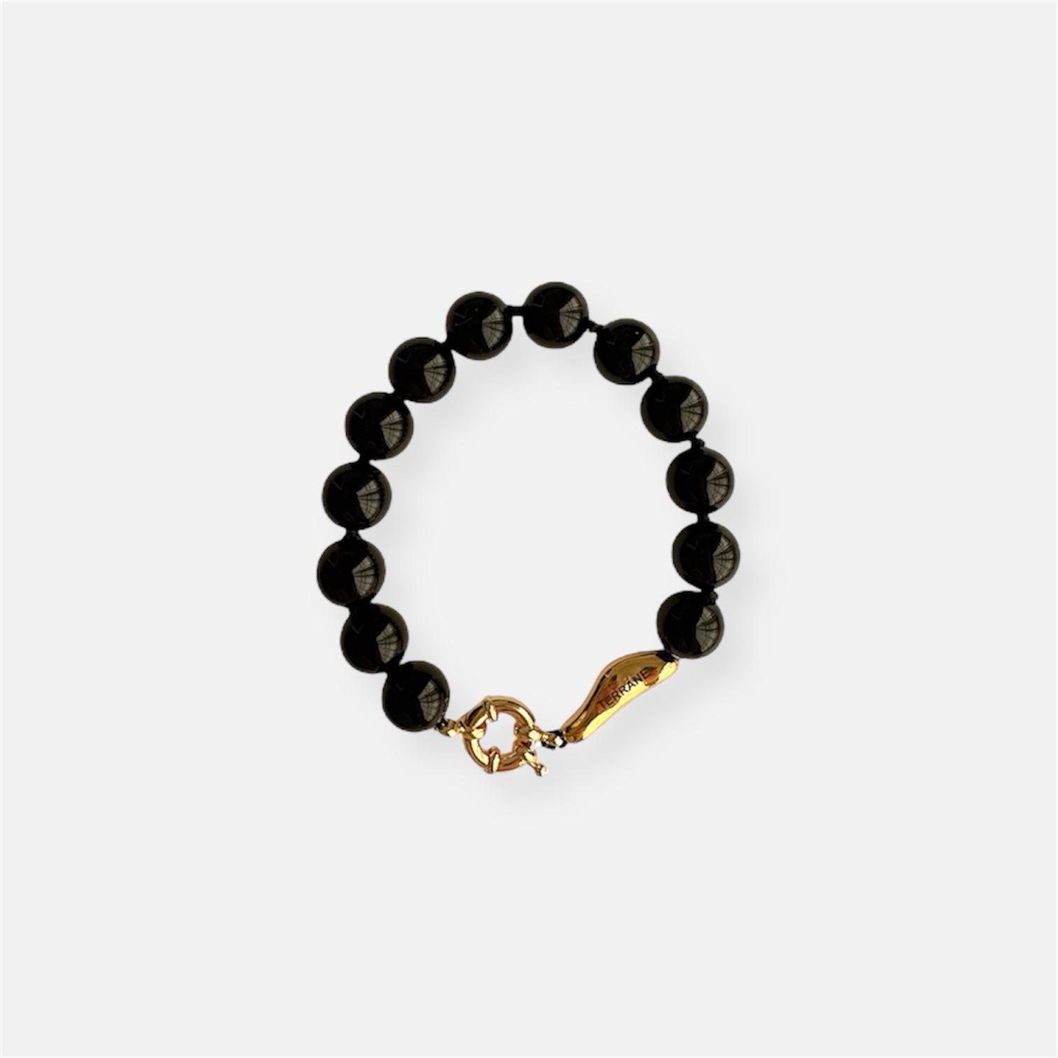 Cada cuenta de resina de 12 mm refleja la fuerza y belleza orgánica del entorno mediterráneo. El cierre bañado en oro y el charm grabado aportan un detalle duradero, elegante y muy Terráne.